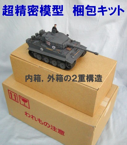 精密模型完成品 輸送用 輸送対象 1/24自動車模型、1/24スロットカー、1/35戦車 戦闘装甲車両模型、1/20F1模型 その他、フィギュアなど。 外箱、内箱の二重構造に加え、3種類の緩衝材のセット。 一度つかったら、やめられません。 こちらのサイトで目下1/35 戦車 配送に使用中です。 素材はびっくりするほど、品質最高級のダンボールです。(紙が曲げの力に強く、耐久性に優れています。美しさも備え、誰の期待も裏切りません。ダンボールの決定版です.私がずっと使っています。無理を言って、ダンボール会社の副社長さんに作っていただきました.大事な模型のために、最高の運搬用の箱のキットです。 |