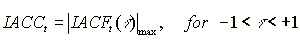 WIACCは見かけの音源の幅(Apparent Source Width)に関連するパラメータで、下の図に示すようにIACCからd(通常はIACCの閾値である0.1が計算に使用される)下がった所のピークの幅(単位は[ms])として定義される。信号に含まれる周波数成分によって値が異なり、低周波数ほど大きな値となる。