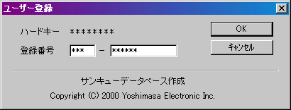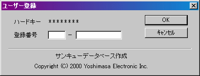 もし、******** の部分に、8桁の数字以外の、“Error”や“ハードキーエラー”といった表示が出たら、一度試用してから、このユーザー登録作業を行ってください。